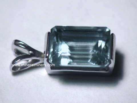 This genuine aquamarine pendant is set with a 9.6mm long x 7.4mm wide rectangular faceted aquamarine