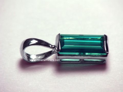 The baguette cut tourmaline gemstone in this unique pendant measures 10x5mm