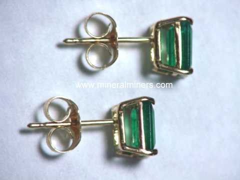 This unique pair of genuine emerald earrings is set with 6x4mm octagon faceted gems
