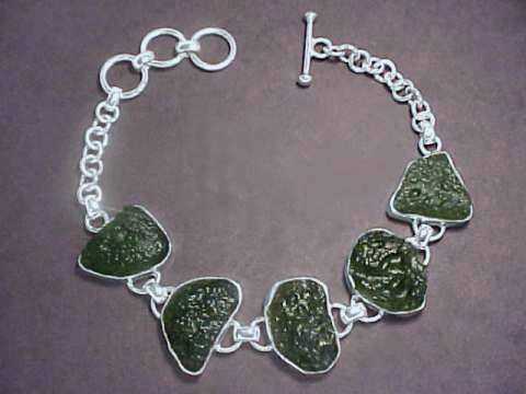 Five Piece Moldavite Bracelet in Sterling Silver