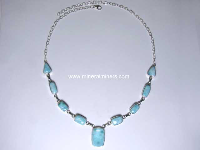 This unique larimar necklace has an adjustable length up to 18.5" long