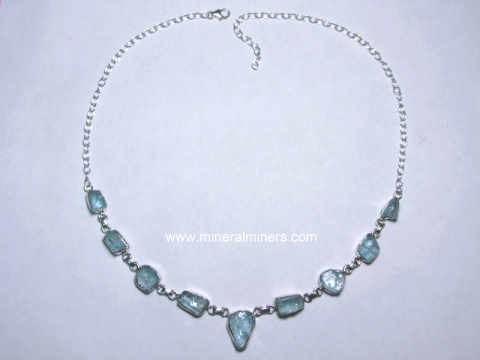 This Natural color aquamarine necklace has an adjustable length up to 18.5 inches long