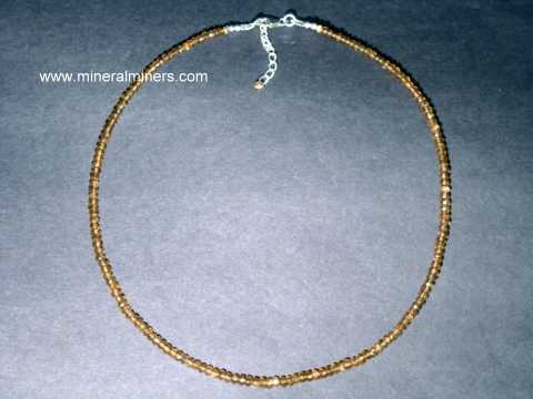 Genuine brown zircon necklace with an adjustable length from 17.5" to 18.5" long (45cm)