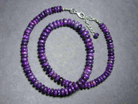 This genuine sugilite necklace is adjustable from 17 to 18 inches long