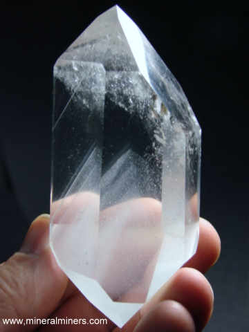 Polished from a natural phantom quartz crystal mined in Minas Gerais, Brazil