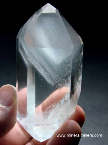 Polished from a natural phantom quartz crystal mined in Minas Gerais, Brazil