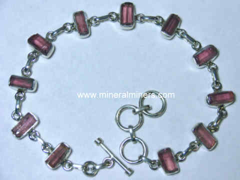 Pink Tourmaline Crystal Bracelet in Sterling Silver