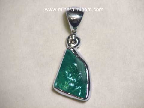We offer a variety of natural emerald items like emerald crystals and emerald in matrix mineral specimens, and a variety of different shapes, sizes and qualities of genuine emerald gemstones. Each one of our emerald jewelry items is set with genuine emerald gemstones mined in either Colombia, Brazil, or Zambia. Here at mineralminers.com, we do not have any lab-created emeralds! We specialize in genuine emerald jewelry. Our faceted emerald jewelry items are set in solid 14k and 18k gold, and our cabochon emerald jewelry designs include natural emerald pendants set in 925 sterling silver.