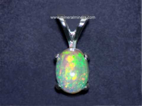 We grade our Ethiopian opals from the lowest to the highest quality as follows: commercial quality - fine quality - very fine quality - extra fine quality. We also have other genuine Ethiopian opal items available including Ethiopian opal gemstones, Ethiopian opal mineral specimens, and Ethiopian opal lapidary rough for making high quality natural opal gemstones. Each one of our Ethiopian opal jewelry items is set with an untreated natural Ethiopian opal gemstone! Here at mineralminers.com, we don't have any created opals! We have genuine Ethiopian opal jewelry designs set with cabochon gems of natural solid opal in both 14k gold and in pure 925 sterling silver. We are offering genuine Ethiopian opal jewelry designs that were handcrafted into Ethiopian opal pendants, earrings, Ethiopian opal necklaces, Ethiopian opal rings and Ethiopian opal bracelets.